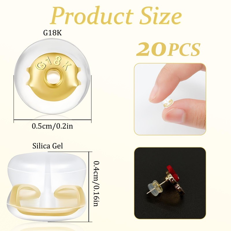 - Gentle on Skin: Made from 18K gold and high-quality clear silicone, these earring backs provide a comfortable fit for those with sensitive skin, ensuring a delightful wearing experience without irritation throughout the day