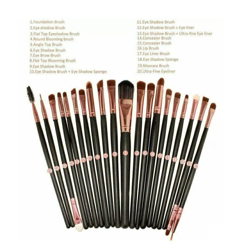 20 Pcs Makeup Brush Set Eyeshadow Eyebrow Powder Foundation Contour Lip Brushes