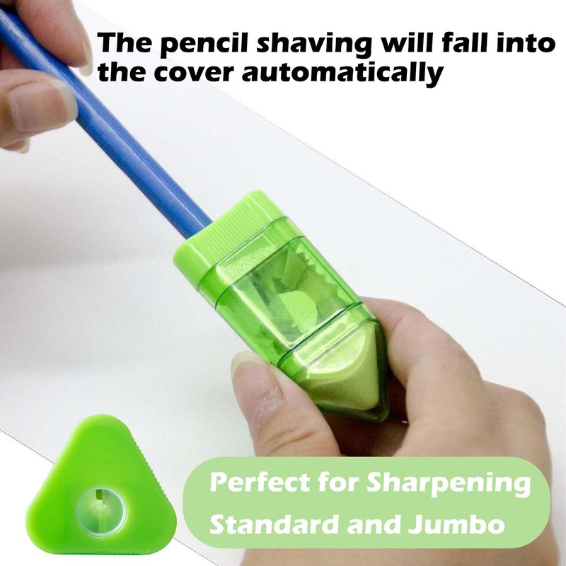 20 PCS Manual Pencil Sharpener with Eraser-2 in 1 Single Hole Triangular Shape Handheld Crayon Sharpener with Receptacle and Eraser for School, Office and Home Supplies