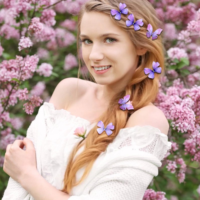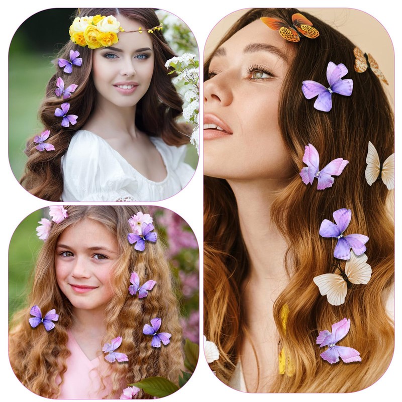 - 3D Butterfly Hair Clips: Crafted with precision, these 3D butterfly hair clips offer a vivid and enchanting design. The glitter butterfly hair clips in purple and pink hues add a splash of color to your ensemble.