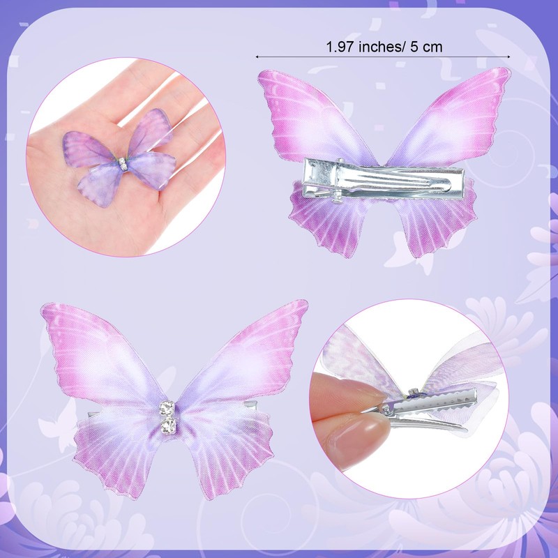 - Purple Butterfly Hair Clips: Our set includes 20 pieces, with 10 purple and 10 pink clips, each measuring 1.97 inches. Lightweight and comfortable, these clips are ideal for decorating braids, fixing bangs, and more.