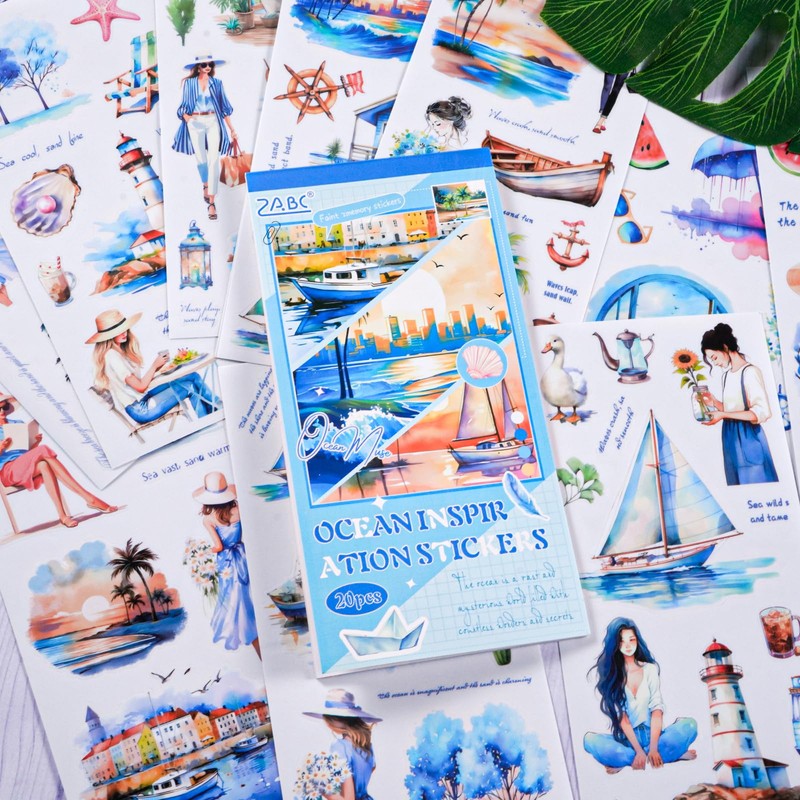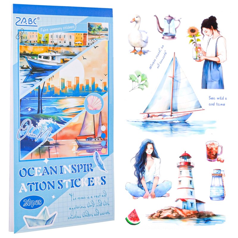 20 Pcs Ocean Stickers for Scrapbooking, Waterproof Decorative Stickers with Scenic Cityscapes, Boats and Fashion Designs - Great for Journals, Scrapbooking, DIY Crafts and Luggage Decorating