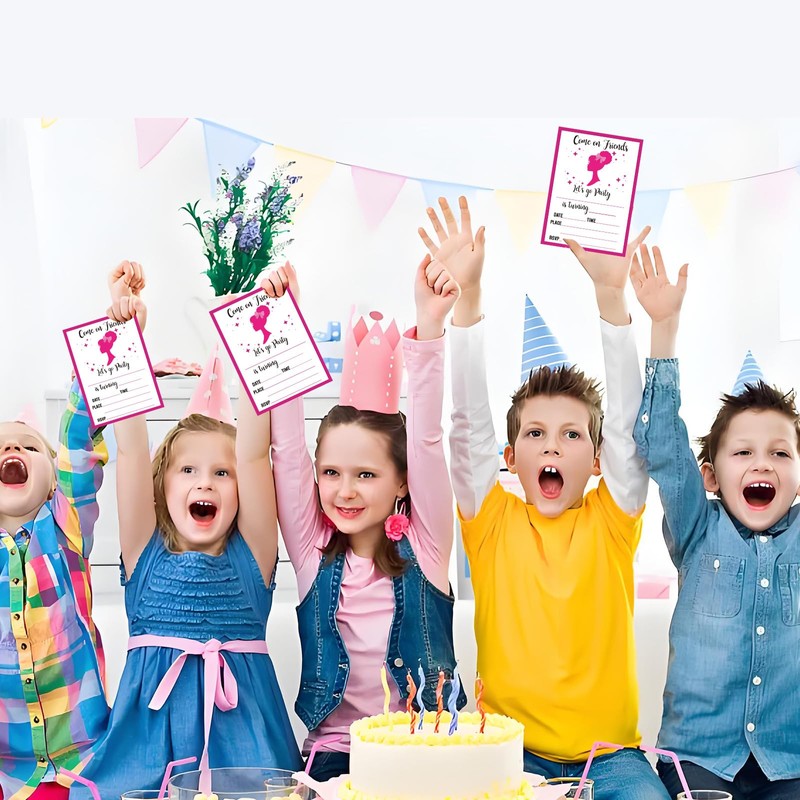 20 Pcs Pink Girl Theme Birthday Invitation Cards, Let's Go Party Pink Doll Birthday Party Supplies, Princess Birthday Invitations with Envelopes and Sticker for Girls(R)
