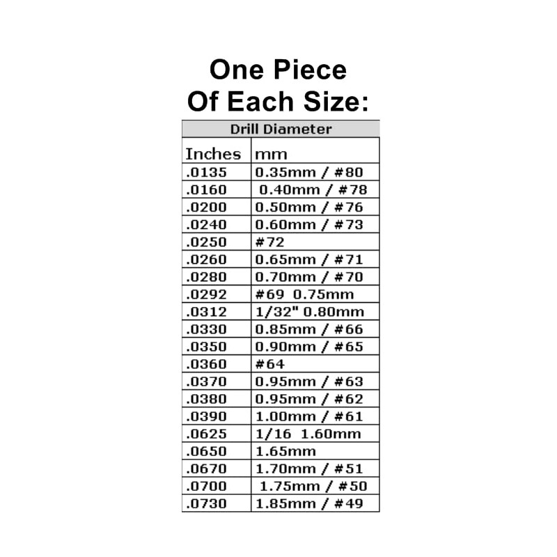 • See images for drill sizes included.