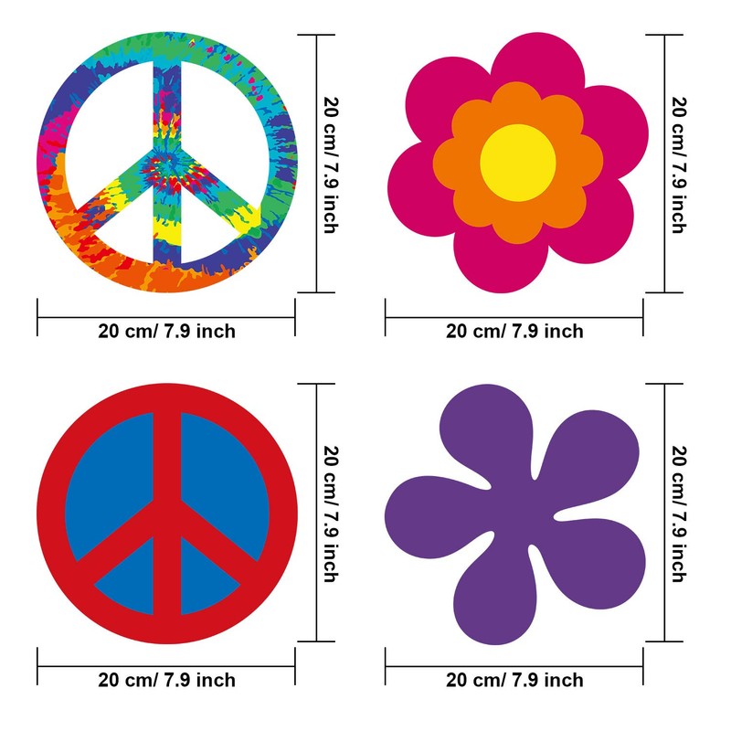- Quality and design: 20 pieces 60's party cutout of quality, with a variety of shapes, colors, and styles; There are 4 different styles of retro flower cutouts peace sign cutouts, with strong 60’s theme elements, great for bringing your 60s party or prom to life