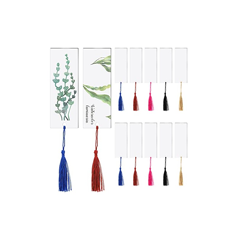 20 Pieces Blank Acrylic Bookmark Set Craft Clear Acrylic Blank Bookmark with 20 Pieces Mini Bookmark Tassel for DIY Projects and Present Tag (5 x 14 cm/ 2 x 5.5 Inch)
