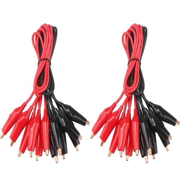 - -20 test leads with alligator clips, available in 2 colours: black × 10, red × 10, test leads - length 50 cm/19.7 inches, wire 24 AWG.
