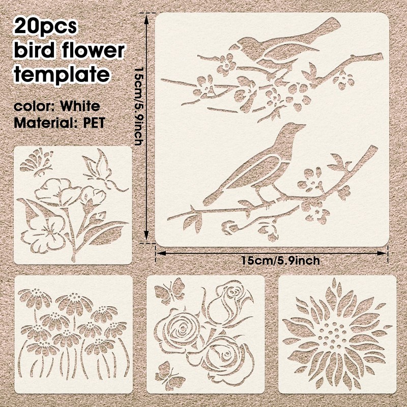 • 【Package Include】:20 pieces painting wall stencils in different styles, package include: bird stencils for painting on wood, flower paint stencil, tree stencil templates, leaf stencils for painting, rose wall stencil, rose stencil, floral stencil and others. Each stencil measures about: 5.9 x5.9 inches/ 15 x 15 cm, and please check the size before purchasing.