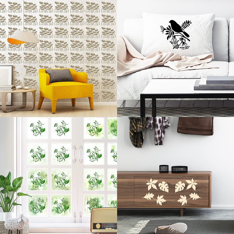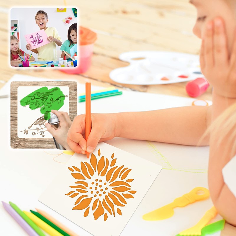 • 【Wide Application】:Variety of flower stencils for wall painting, drawing, artwork, crafts, DIY projects. And you can also use these small stencils for painting on canvas to make peace sign, canvas bag drawing, home decor, furniture decoration with acrylic, chalk or spray-paint.
