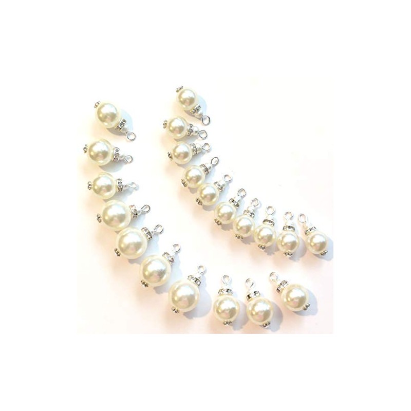 20 Pieces Handcrafted Faux Pearl Drops with Rhinestone Rondelle Spacers for Jewelry Making by Beading Station (Mix 10/12/14mm)