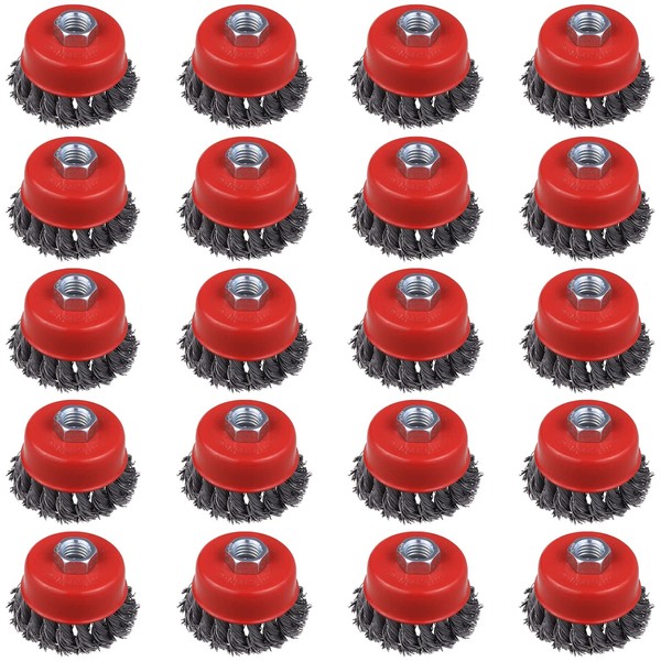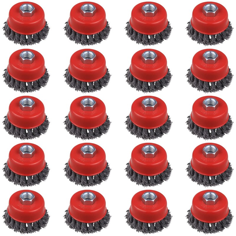 WENORA 20-Piece Knotted 3 Inch Wire Cup Brush for Angle Grinders - 5/8 Inch Arbor for Heavy Rust Cleaning