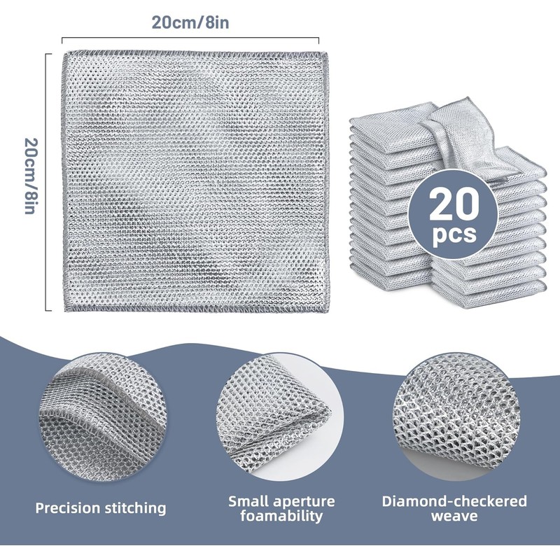 - 【 Package contents 】: The package consists of 20 pieces about 7.87 x 7.87 inches double high quality wire rags. The right size, you can use these cloths to clean stubborn stains anywhere in your home.