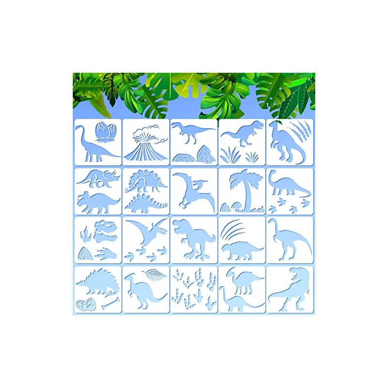 20 Pieces Stencils for Painting Reusable Animal Plant Music Stencil Spring Summer Fall Winter Stencil Template, DIY Stencils for Painting on Wood Burning Canvas Christmas Decor (Dinosaur Style)