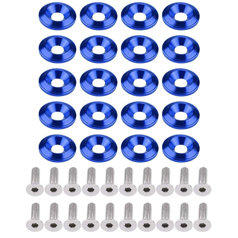 20 piezas de aluminio parachoques Fender Washer Bumper Washer Bolt Engine Bay Dress Up Kit(Azul)