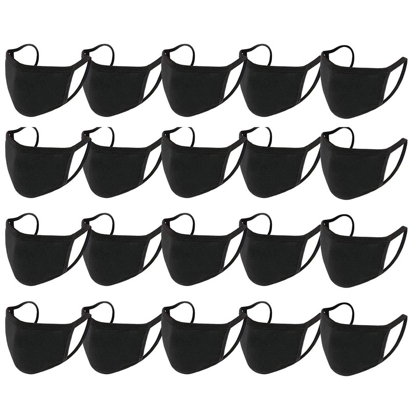 20 piezas de tela de algodón reutilizable, protección a la moda, unisex negro, algodón de polvo, lavable
