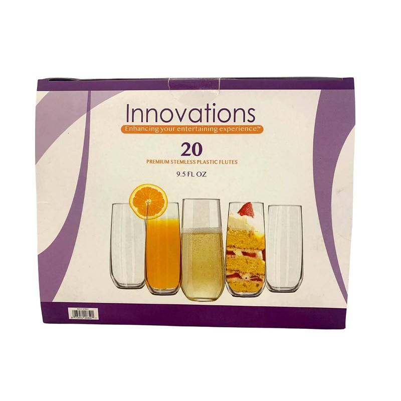20 Premium Stemless Plastic Flutes 9.5oz Each Crack Resistant Plastic