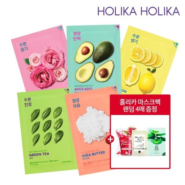 20 Pure Essence Mask Sheets + 4 Holika Mask Packs Randomly Gifted / 20매 퓨어 에센스 마스크시트+홀리카마스크팩 4매 랜덤증정