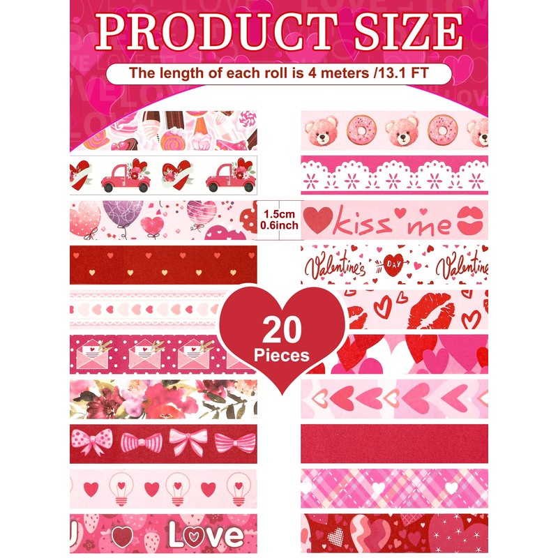 - Wide range of usages: these Valentine's Day washi tapes are not only suitable for making greeting cards, scrapbooks, DIY crafts, journals, diaries, notebooks, wreath, etc., but also can be applied for gift wrapping, holiday decoration, holiday decoration, wall art and so on, very practical