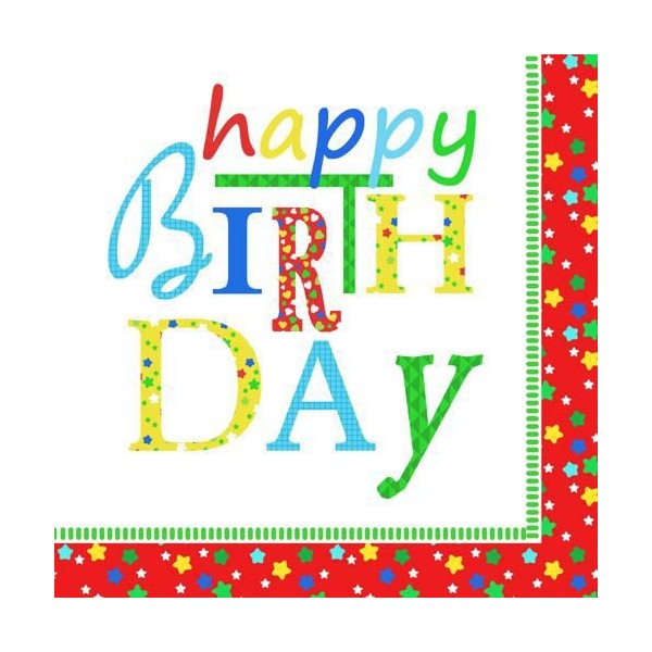 '20 Serviettes 3 Ply 1/4 Fold 33 x 33 cm Happy Birthday FEIDER