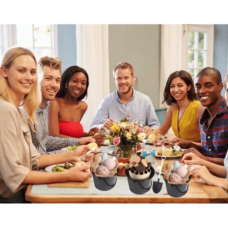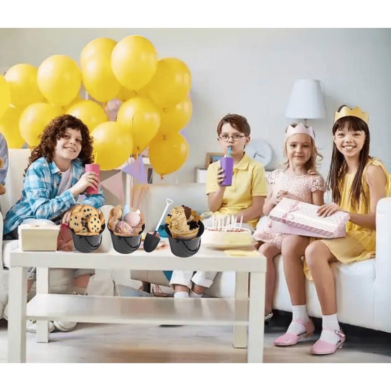20 Set Plastic Dessert Cups with Shovel Spoons, Reusable 5.7oz Black Bucket Cup for Birthday Party Supplies,Cupcakes and Mousse,DIY Baking (Reusable,5.7oz)