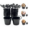 20 Set Plastic Dessert Cups with Shovel Spoons, Reusable 5.7oz Black Bucket C...