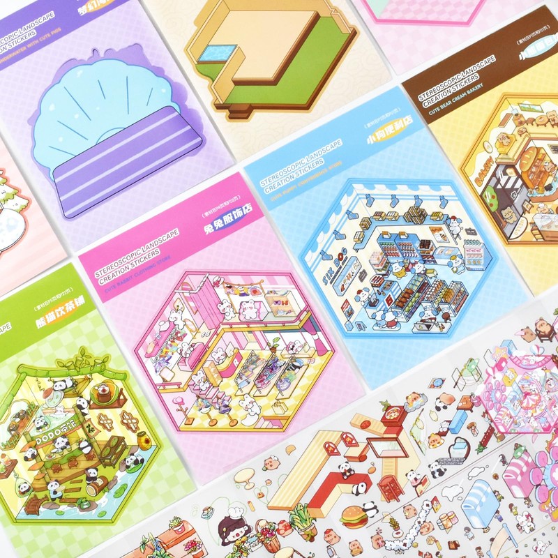20 Sets DIY 3D Sticker Scene Collection,DIY 3D House Stickers, Make Your Own Sticker Therapy for Adult Cute Cartoon Stickers Scen Scenes Miniature Room for Relief Stress(Style2)
