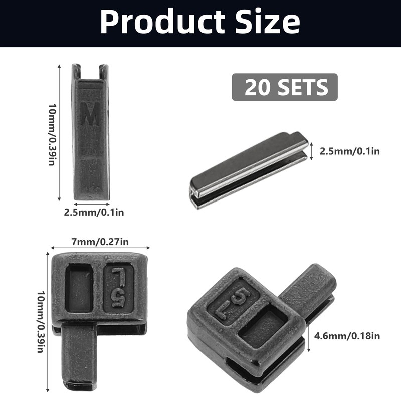 20 Sets Size #5 Metal Zipper Latch Slider Retainer Insertion Pin Zipper Bottom Zipper Stopper for 5mm Metal Zipper Repair Zip Sewing Replacement DIY