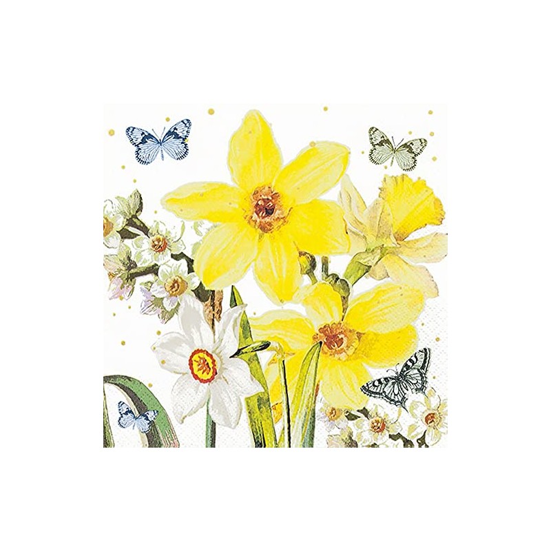 20 Small Cocktail Napkins Daffodils in Full Leaf | Spring | Easter | Table Decoration | Decoupage | Napkin Technique 25 x 25 cm
