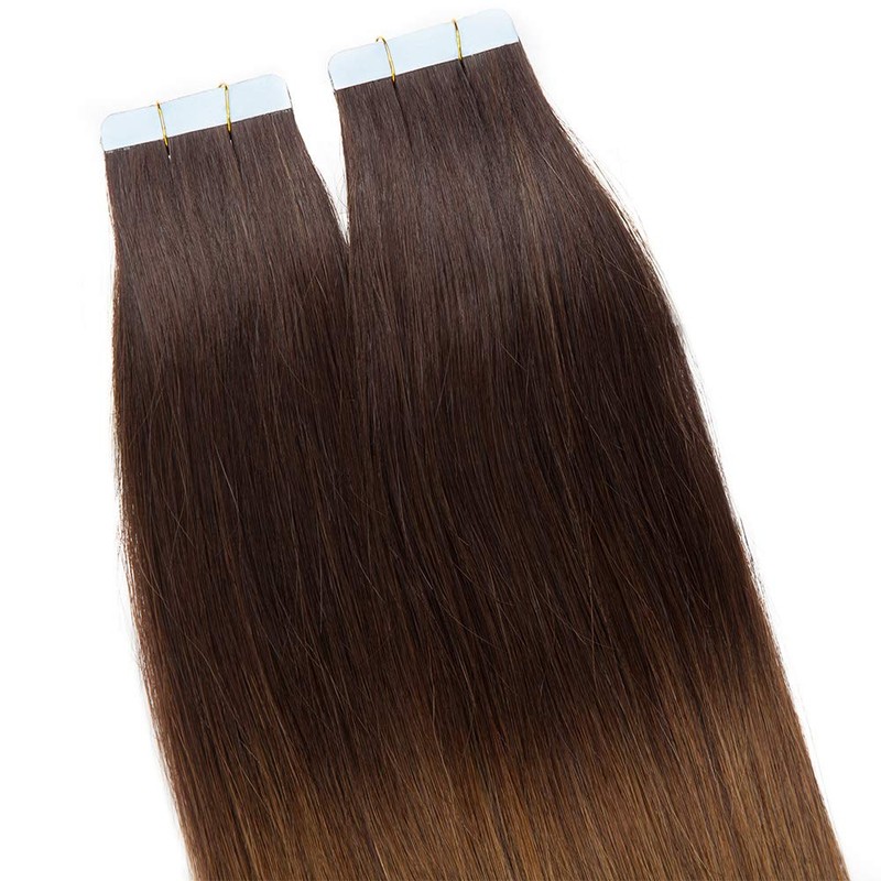 20" Tape in Hair Extensions Human Hair 20pcs #2T6 Dark Brown ombre Light Brown (50g)