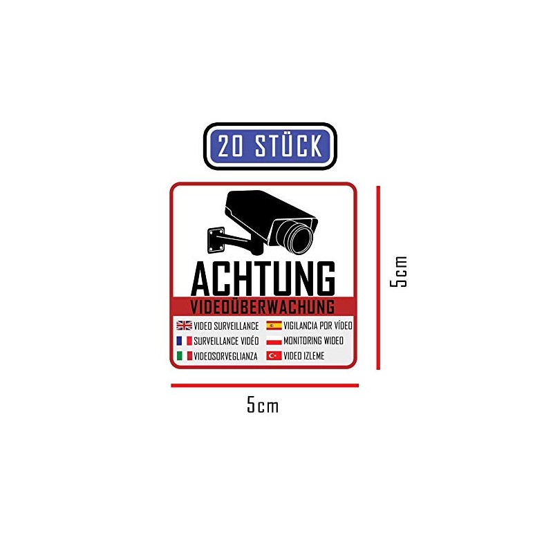 - 20 CCTV Stickers (20 Pieces) 5 x 5 cm