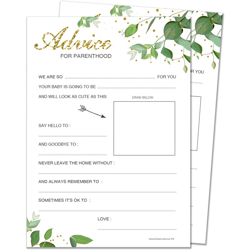 - BABY ADVICE CARDS FOR A BABY SHOWER PARTY ⭐ Pretty Botanical Theme ⭐ Pack of 20 cards for your guests to complete. They make a lovely keepsake for years to come.