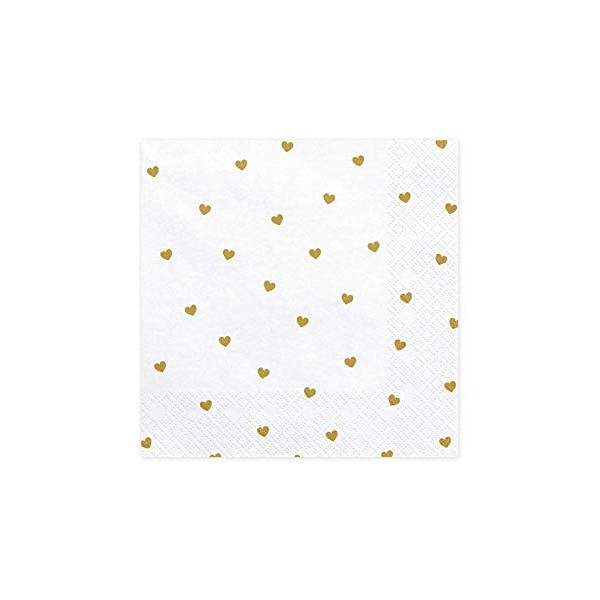 20 x Napkins White with Gold Hearts Wedding Birthday Anniversary