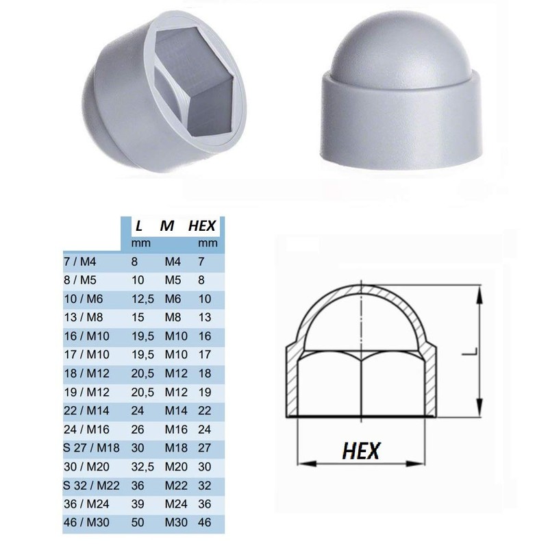 20 x Protective Caps M5 to M30 Grey Cap Nuts Hexagonal Screws Cover Caps for Screw Cap Car Furniture Cover Nuts (M8 / Hex 13 mm)