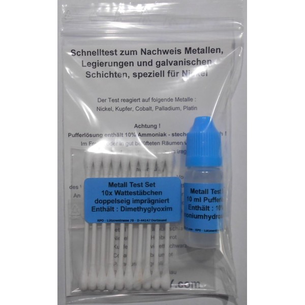- Quick test for detecting metals, alloys and galvanic layers, especially for nickel test