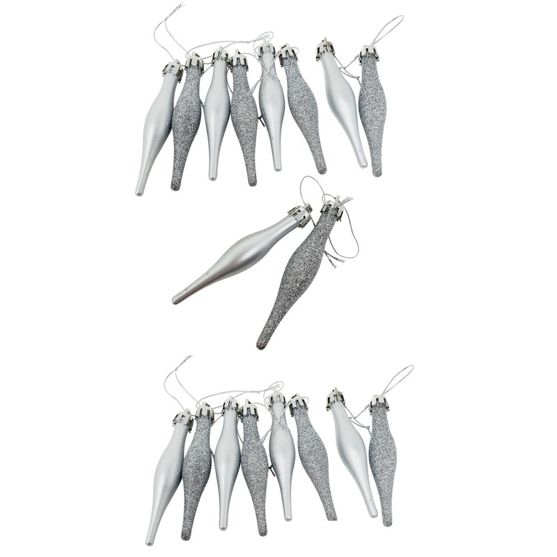 20 x SILVER Christmas Tree Tear Drop Droplet Baubles Decorations -Plastic Glitter Icicle