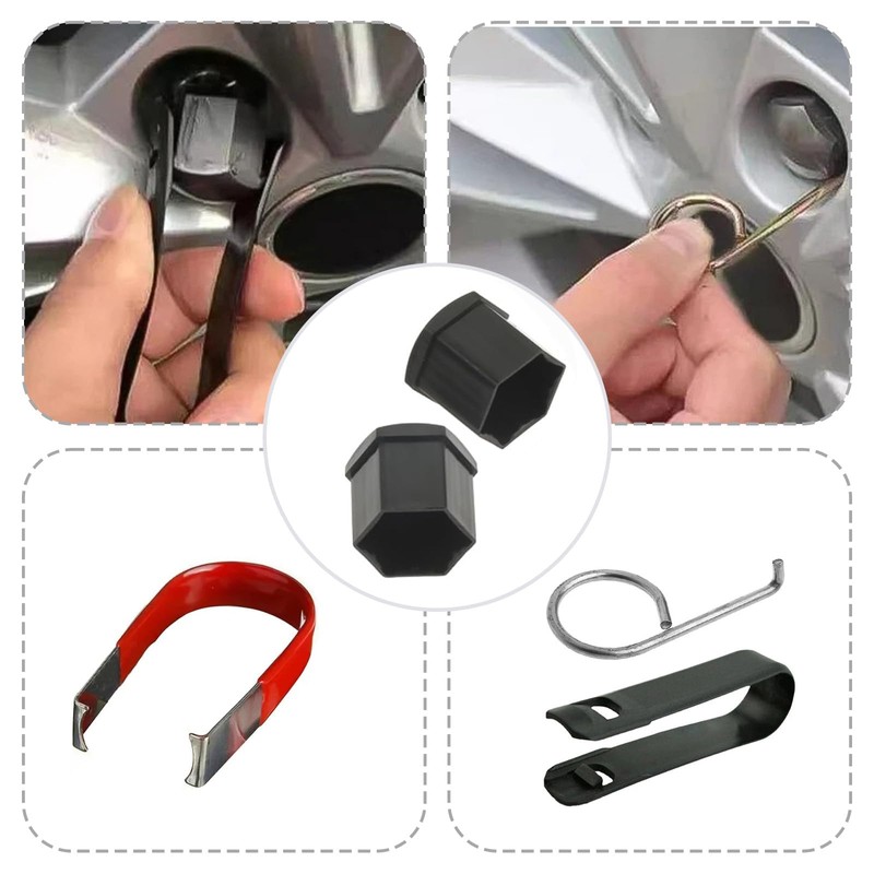 - Wheel nut caps are equipped with a tool for easy removal. Simply press the cover on the bolt to attach it and use the tool.