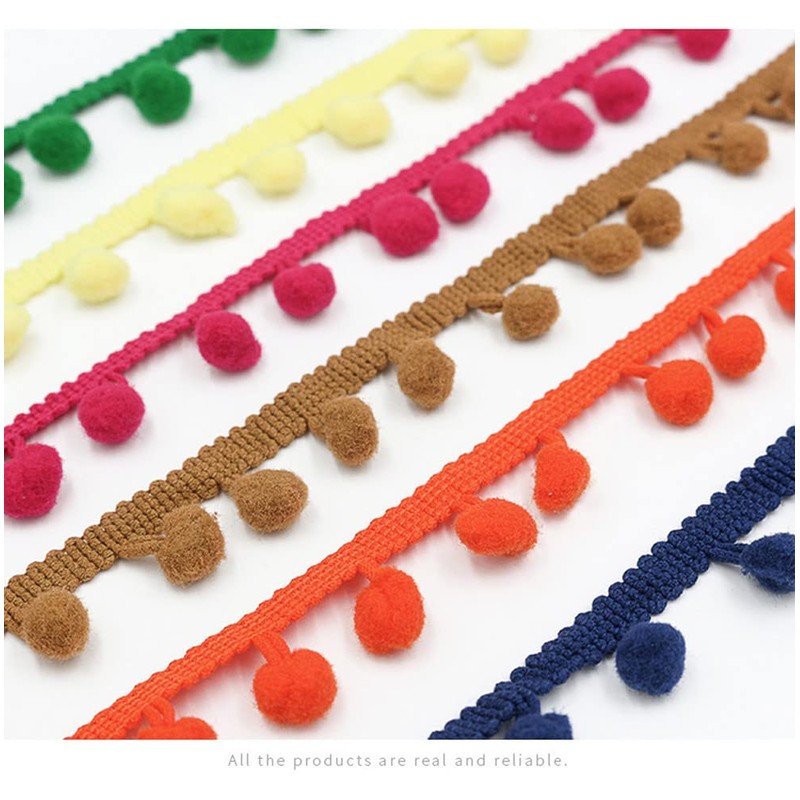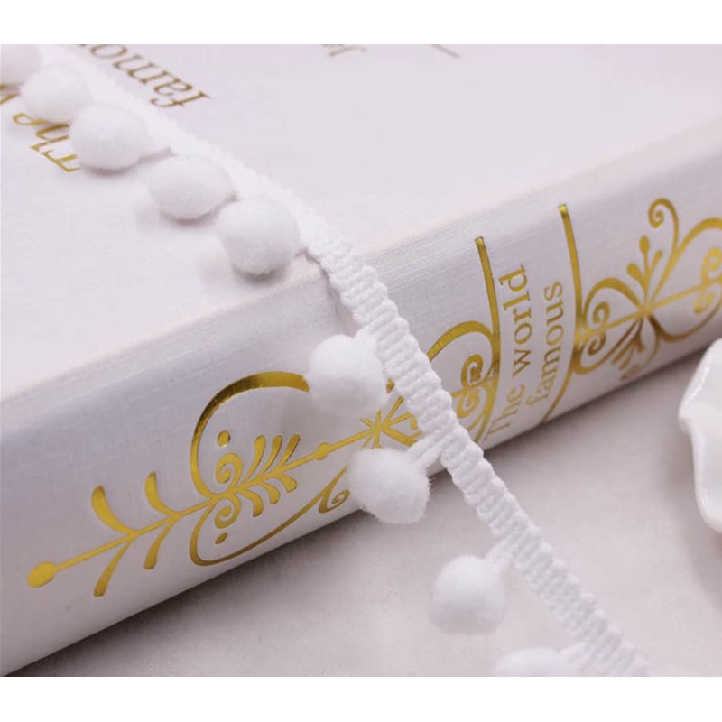 20 Yard Mini Pom Pom Bobble Plain Trim 10mm Bobbles Pompom Trimming Tiny Fringe DIY Crafts Sewing Ribbon for Clothing Accessories Crafts DIY Decoration (White)