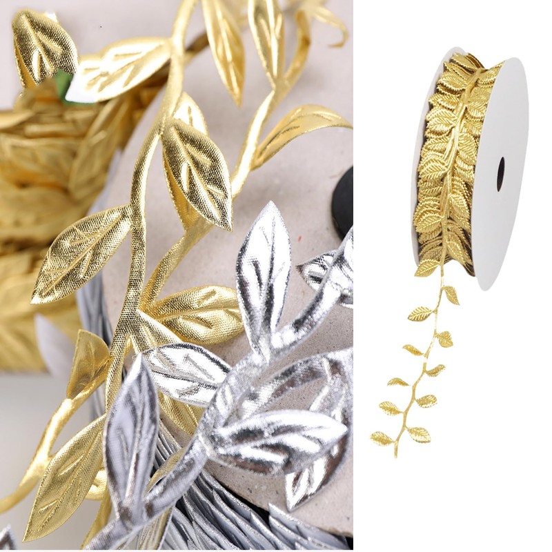 - TOP QUALITY MATERIALS: Our Gold Leaf Ribbon was made of soft polyester, which touches soft and great flexibility. Beautifully designed leaves allow you to decorate stylish and impressive.