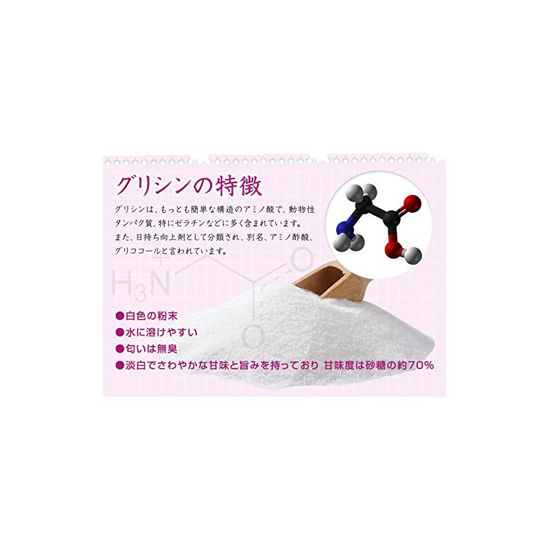 - 原材料名:グリシン(アミノ酢酸) 国内製造品