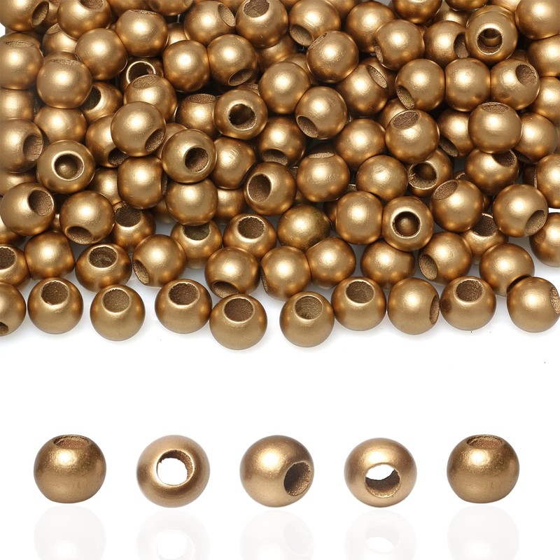 200 16mm Gold Wood Macrame Beads for Handmade Crafts, Large Hole Wooden Loose Spacer Beads for Macrame Projects Christmas Holiday Party Decor, 8mm Hole