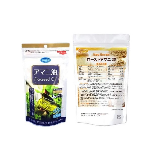 - ローストアマニ 粒 200g + アマニ油3g×30袋(分包タイプ)セット
