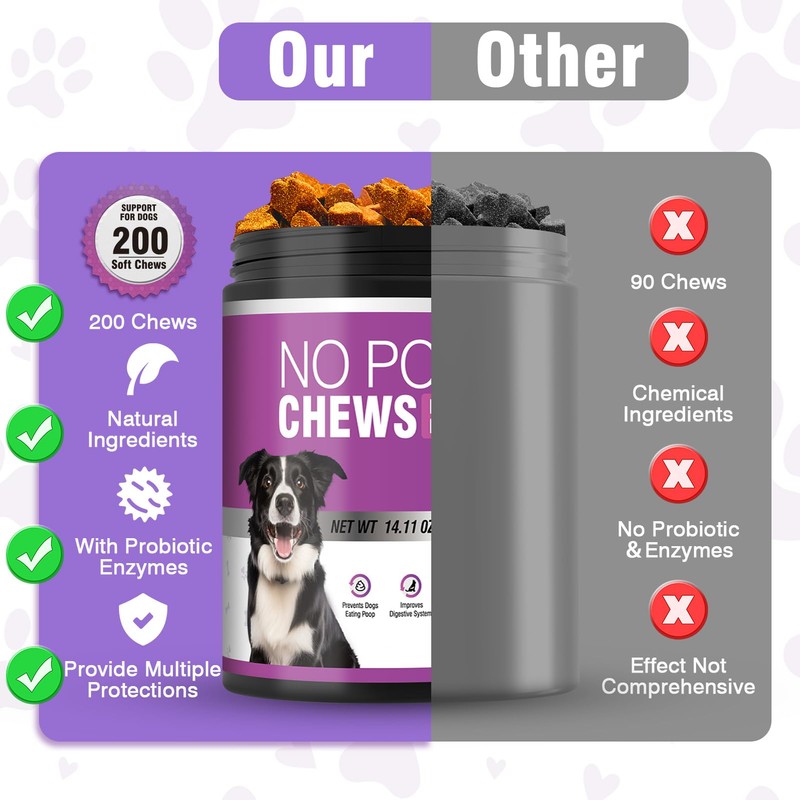 Verified and recommended by veterinarians,prevent dog poop eating is professionally recognized for its natural,safe,and effective properties.By choosing no poop chews,you not only provide a healthy choice for your dog,but also coprophagia deterrent for dogs receive professional protection from veterinarians.
