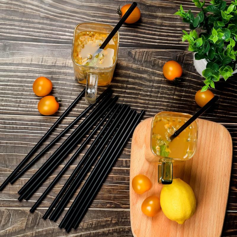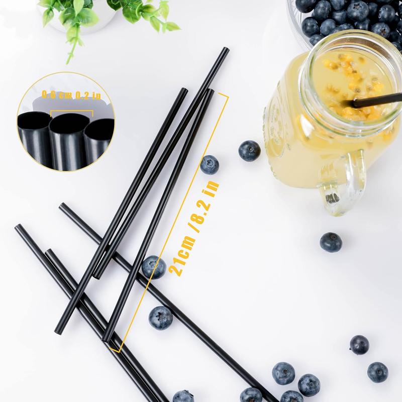 200 STRAWS SPECIFICATIONS: Includes 2 packets of 100 Black plastic drinking straws,0.23'' diameter and 8.26'' long. Quantity: 195~205 (There may be about 2~5 errors in the number.)