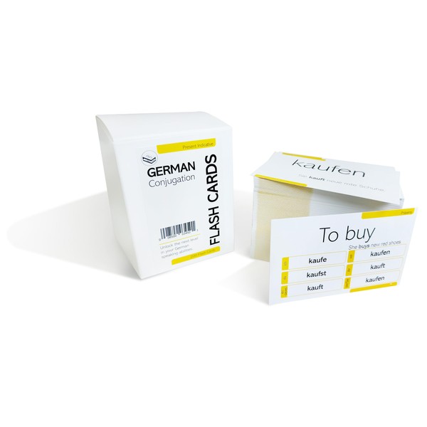 - Designed for students and self-learners, these cards are specifically catered for both children and adults to improve their vocabulary of German verbs and boost their experience with conjugations. All the example sentences in these cards use the vocabulary from our other products and are an excellent supplement to our set of German picture vocabulary flash cards.