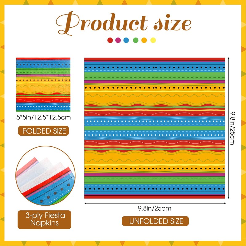 - Material de calidad: estas decoraciones de fiesta de cinco de mayo están hechas de papel grueso, suave y absorbente, difícil de desvanecer y limpiar la suciedad fácilmente; Estas servilletas mexicanas son desechables y se pueden tirar después de usar sin lavar