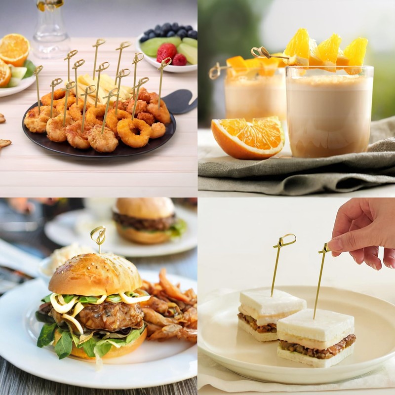 - Chic Knot Design: Enhance your food presentation with our bamboo decorative toothpicks featuring stylish looped knot ends. Suitable for adding a touch of elegance to apizers and finger foods, impressing your guests with their unique design.