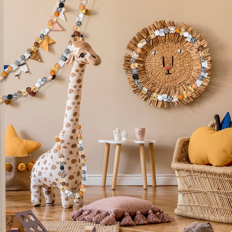 200 Pcs Cute Jungle Animals Wood Beads with Cow Leopard Tiger Giraffe Print Pattern Spacer Loose Beads for Room Party Decor Indoor Tiered Tray Wall Hanging Ornament