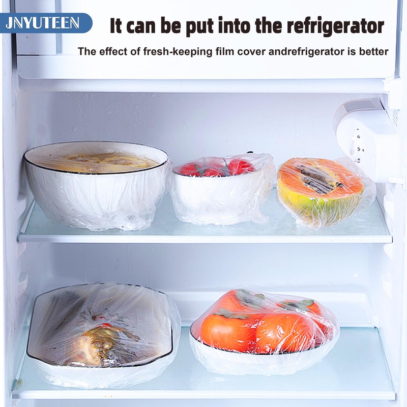 200 Pcs Disposable Elastic Food Storage Covers, Transparent Plastic Wrap Elastic Cling Film, Stretchable Plastic Food Wraps Elastic Stretch Bowl Lids for Kitchen Storage Containers
