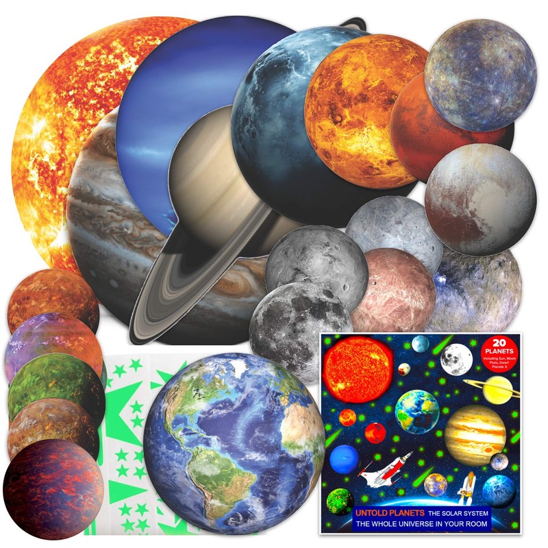 - Complete Solar System Set: Transform any room into an awe-inspiring universe with our glow in the dark stars and planets. This set includes all 20 Planets from our Solar System for kids, including realistic 3D effects.