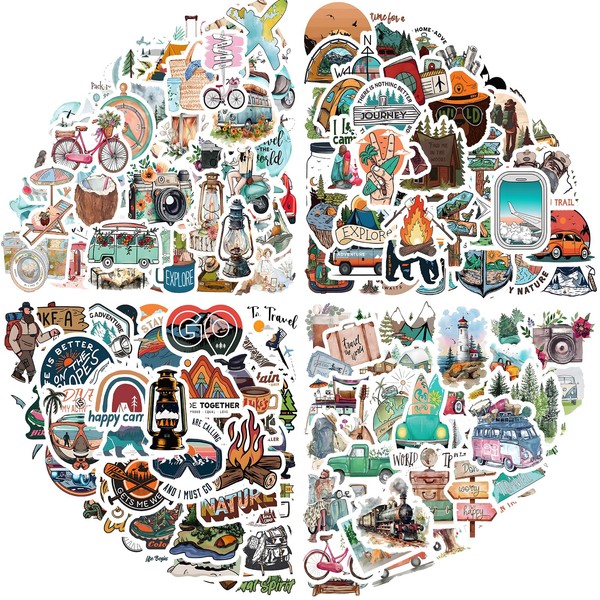 200 Pcs Outdoor Travel Stickers for Kids Teens Adults, Waterproof Hiking Adventure Camping Scrapbooking Luggage Water Bottle Decals for Laptops Bicycles Notebooks Guitar Helmets Cars